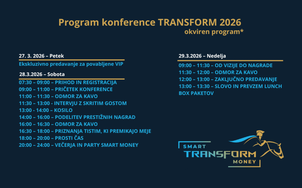 TRANSFORM 2026 ni le konferenca – to je vaša priložnost, da postanete del prihodnosti. Pridružite se nam in pridobite znanje, orodja in povezave, ki jih potrebujete za uspeh v svetu, ki se hitro spreminja.